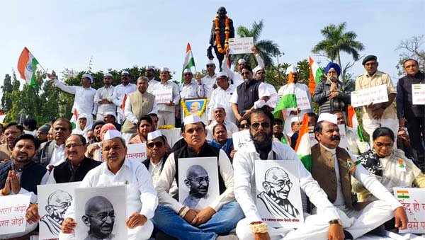 As part of the programme, a foot march was taken out from the statue of Pandit Jawaharlal Nehru to Minto Hall at the Old Vidhan Sabha, where participants paid floral tributes at Mahatma Gandhi’s statue. Congress leaders, party workers and descendants of freedom fighters joined the march and offered their respects to Bapu.
