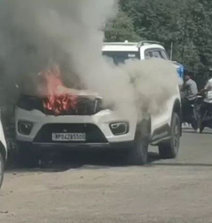 Bhopal: A parked car caught fire in the Manisha Market area of Bhopal’s Shahpura on Tuesday afternoon, alarming local residents, according to police reports. The incident occurred on the service road opposite Bansal Hospital, where a Scorpio SUV was parked near a commercial block. Eyewitnesses noted that no one was inside the vehicle when smoke started billowing from its bonnet.