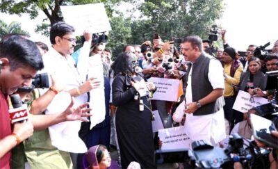 Bhopal: On the opening day of the Madhya Pradesh Legislative Assembly’s winter session, the Congress Legislature Party staged a strong symbolic protest in the Assembly premises, condemning the tragic deaths of children linked to the toxic cough syrup incident in Chhindwara.